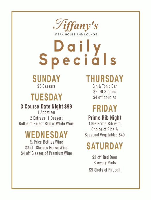 Enjoy Tiffany’s favorites, a relaxing lounge, and our new Wine Bar!